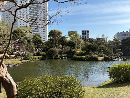 とにかく緑がいっぱい!!中央に大きな池!奥には国技館の屋根!