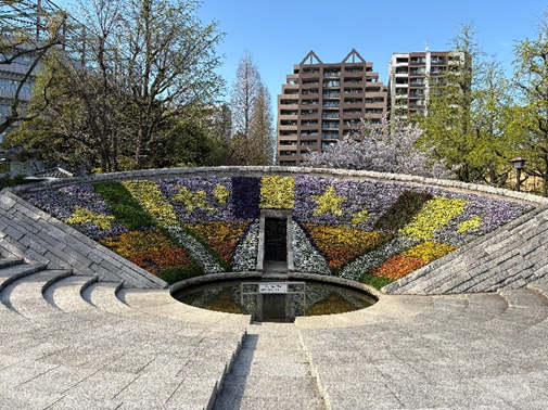 実はこの大きな花壇は「平和を祈念する碑」であり、戦争で受けた甚大な被害を忘れず、